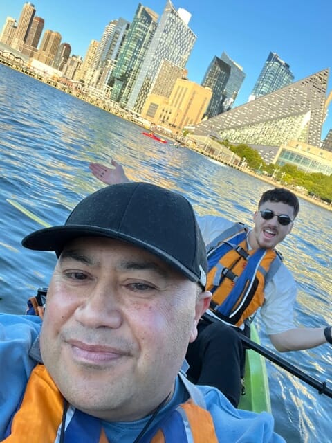 Procházka po městě je nejlepší způsob, jak poznat, co New York nabízí. Ale pro změnu, proč si nezajet na kajaku na slavné řece Hudson? Je to skvělý způsob, jak zažít město z jiného úhlu a perspektivy. Podél mola je několik společností, které pronajímají kajaky a berou skupiny na vodu, přičemž uspokojují všechny úrovně zkušeností. Utratil jsem 65 USD a šel jsem do Manhattan Kayak Company. Nováčci jako já dostali rychlou lekci, jak pádlovat, aby se připravili na 90minutovou cestu, která nabízí úchvatné výhledy na město z vody.